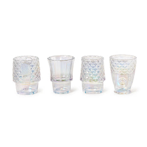 Bring shimmer and sophistication to every gathering with this stunning set of four stackable glasses. Each piece features a mesmerizing iridescent finish that catches the light beautifully, creating an eye-catching display on your bar or table. The generous capacity makes them perfect for everything from cocktails to refreshing beverages, while their stackable design saves precious cabinet space. Ideal for entertaining or everyday elegance, these glasses transform any drink into a celebration.